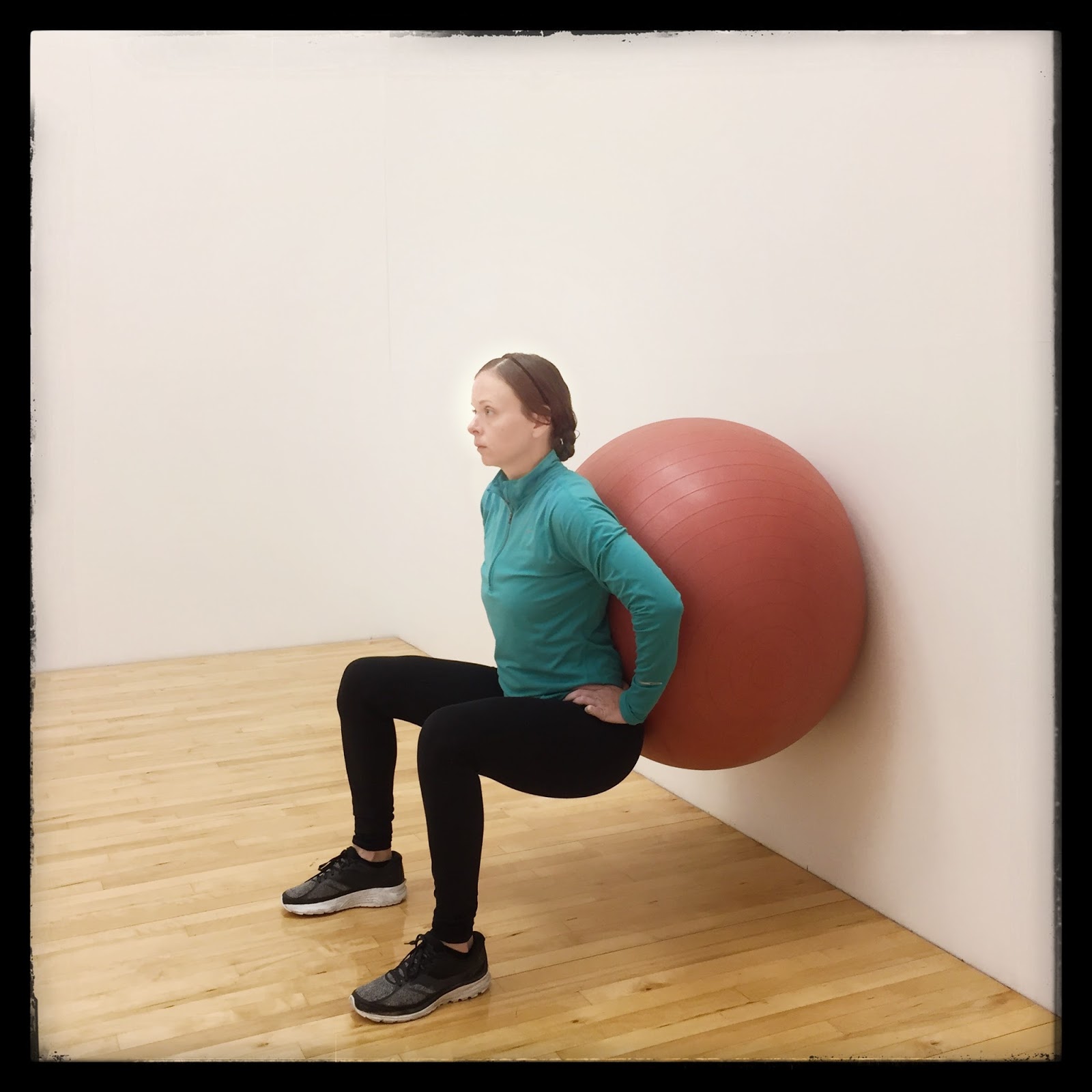 By utilizing a stability ball for the exercise you can focus on the form of the exercise rather than the pain of the squat! To perform the exercise place a stability ball against the wall and stand facing away from the wall. Stand with your sacrum (the triangular shaped bone at the base of your spine) supported against the ball. Start the movement from your hips moving back and down as you bend at the knees to a 90 degree angle. If you want to power up the exercise add a weight in a goblet hold in front of you.